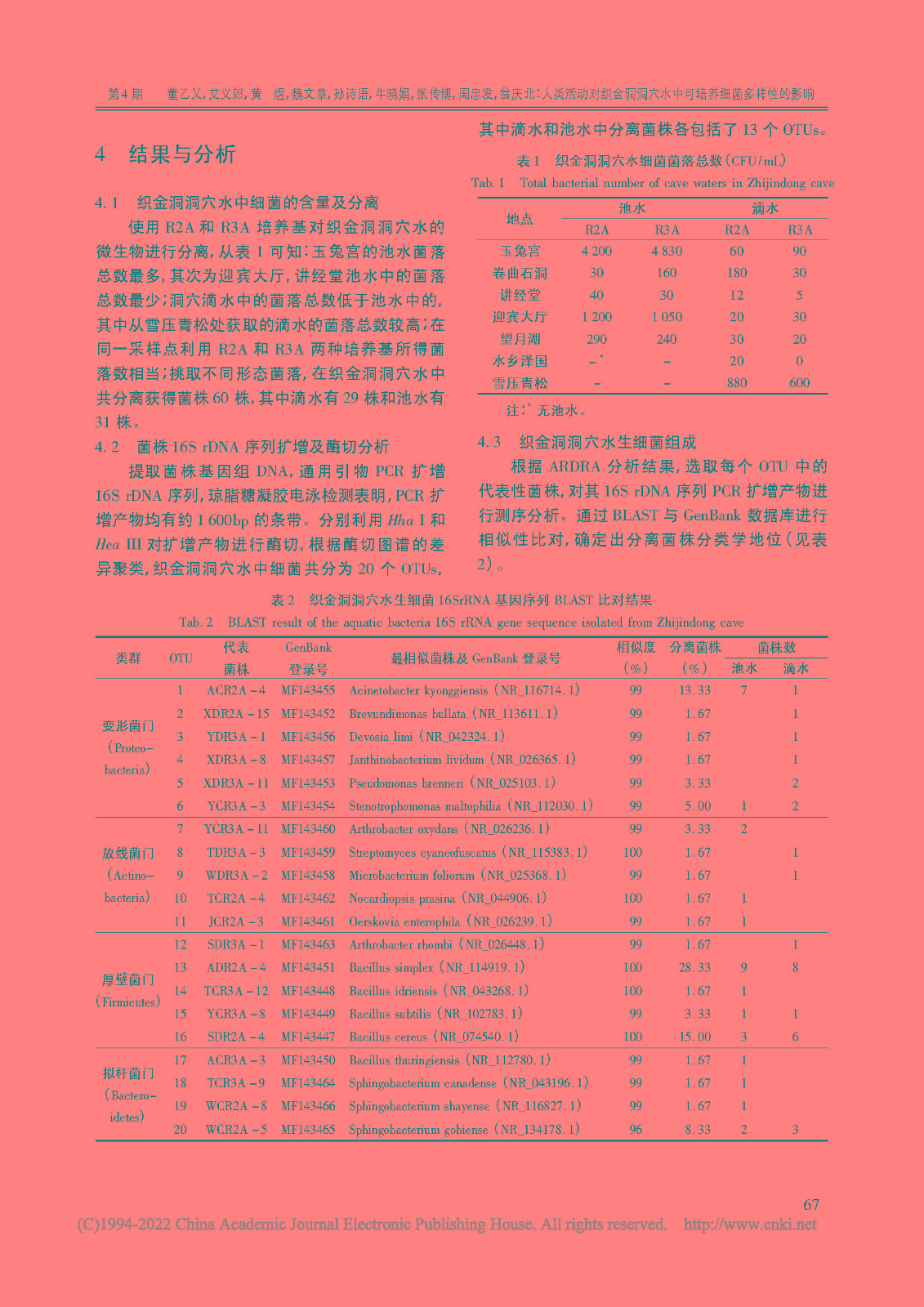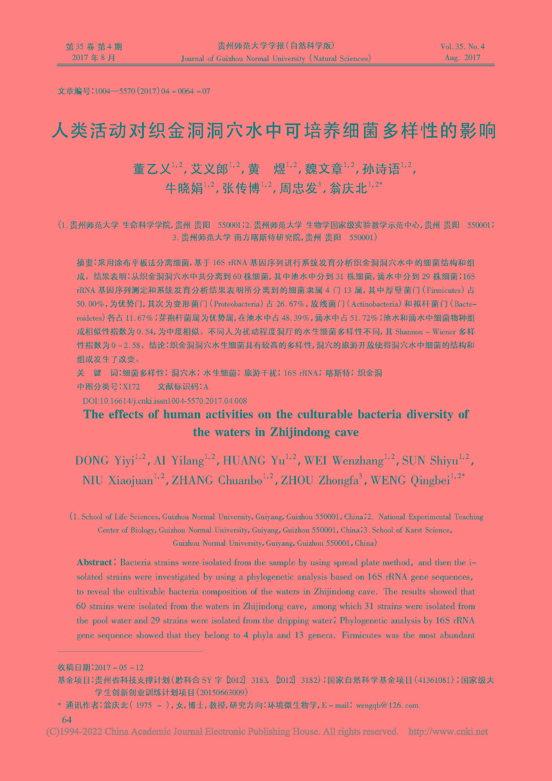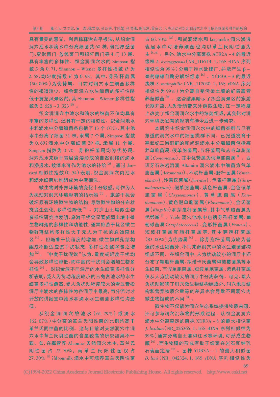 人类活动对织金洞洞穴水中可培养细菌多样性的影响_董乙乂 (1)