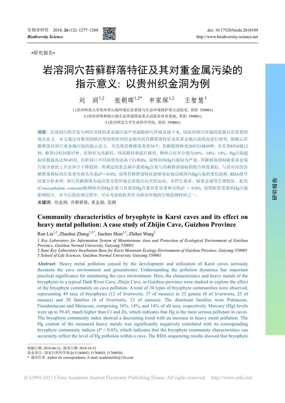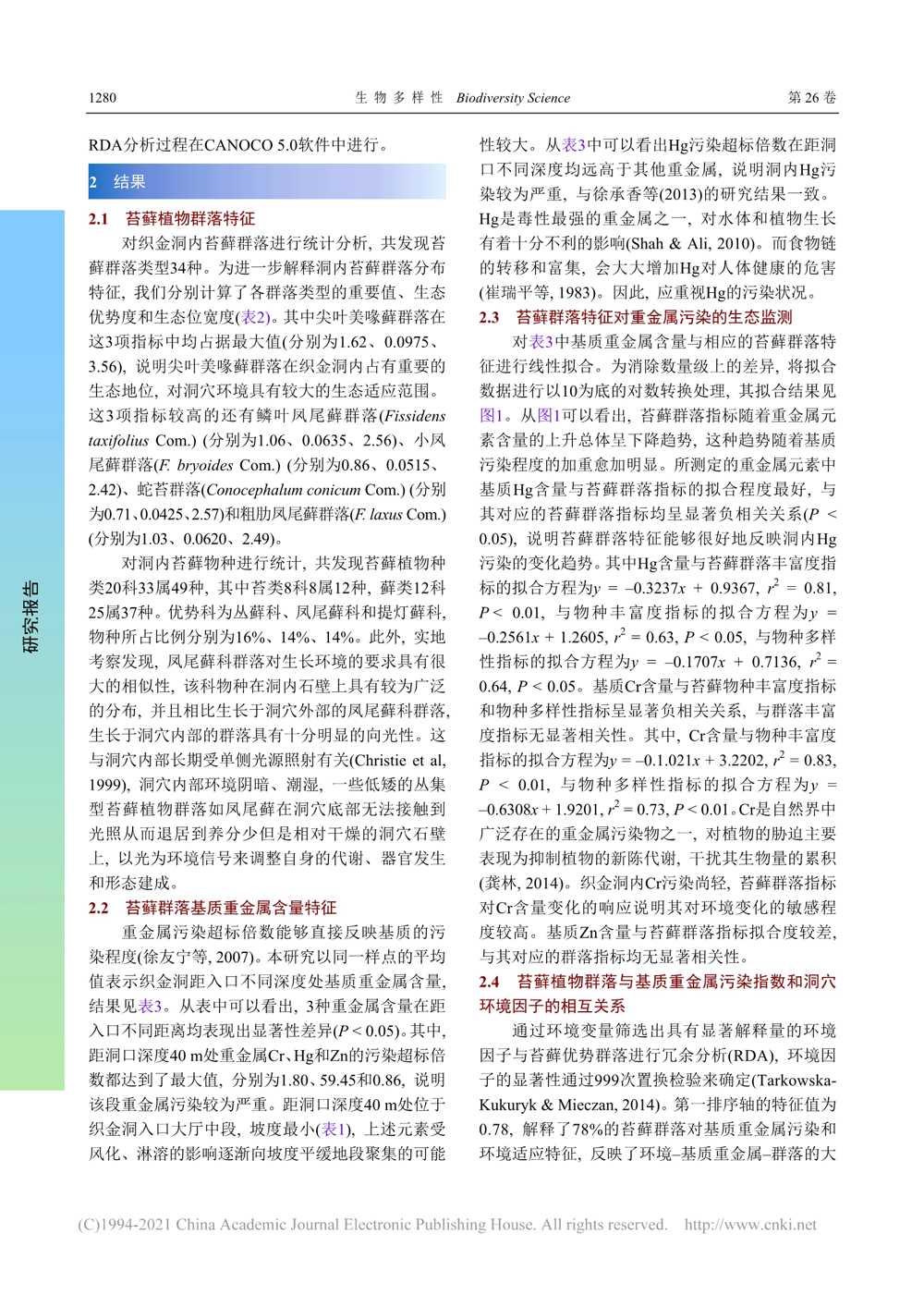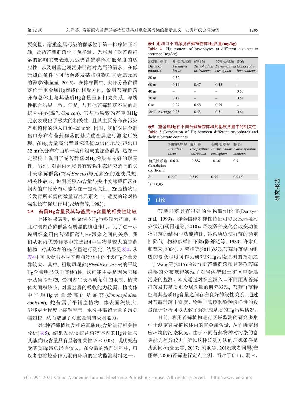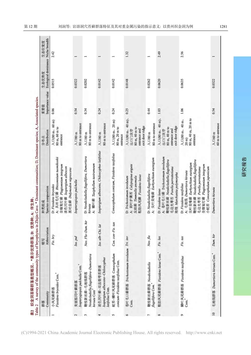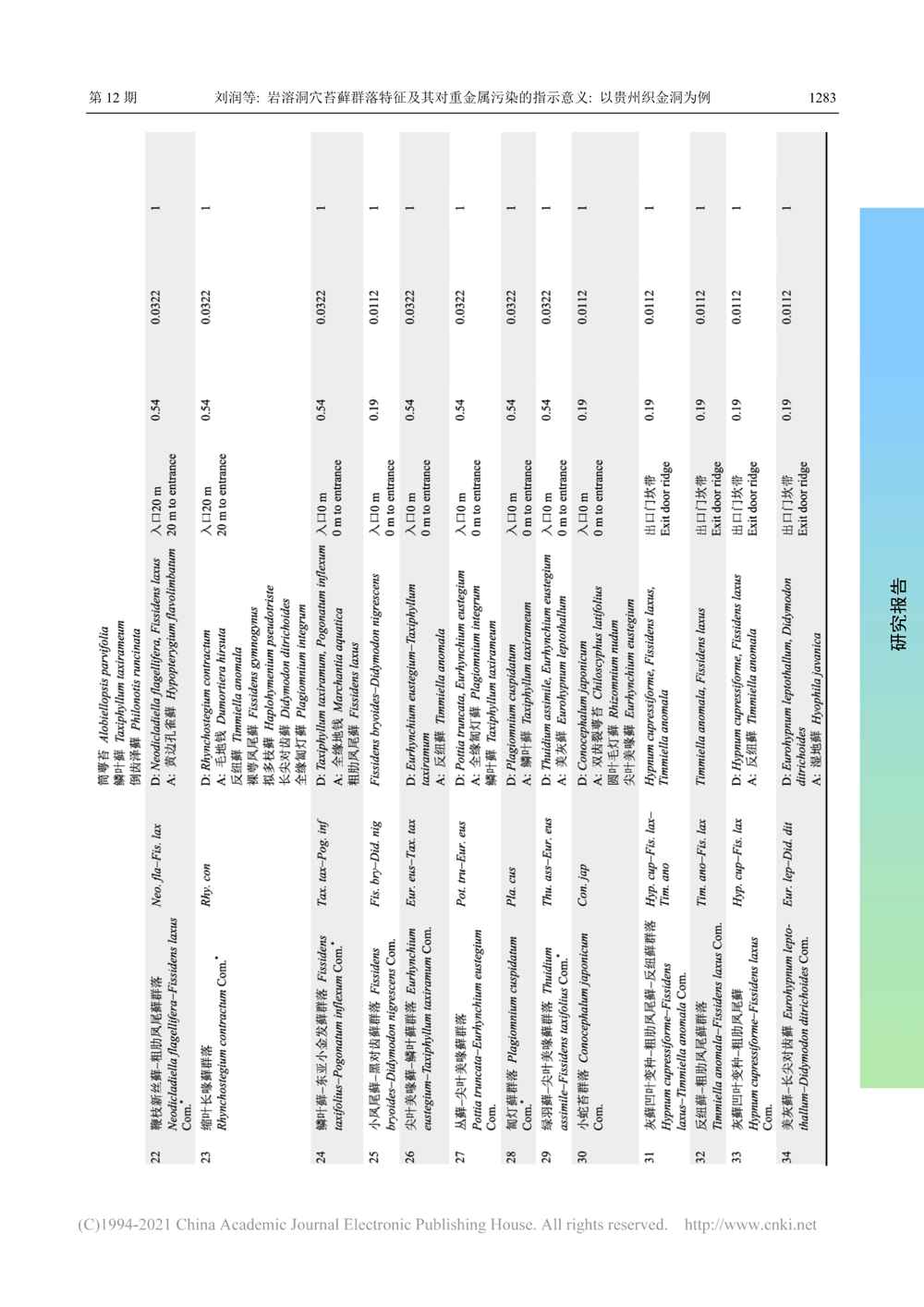 岩溶洞穴苔藓群落特征及其对...指示意义_以贵州织金洞为例_刘润