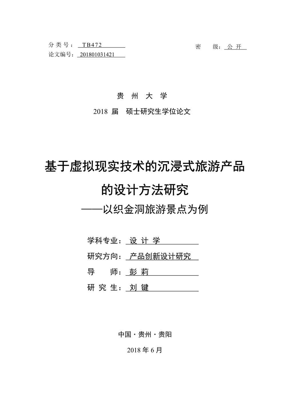 最终稿_刘键_2015021951_基于虚拟现实技术的沉浸式旅游产品的设计方法研究