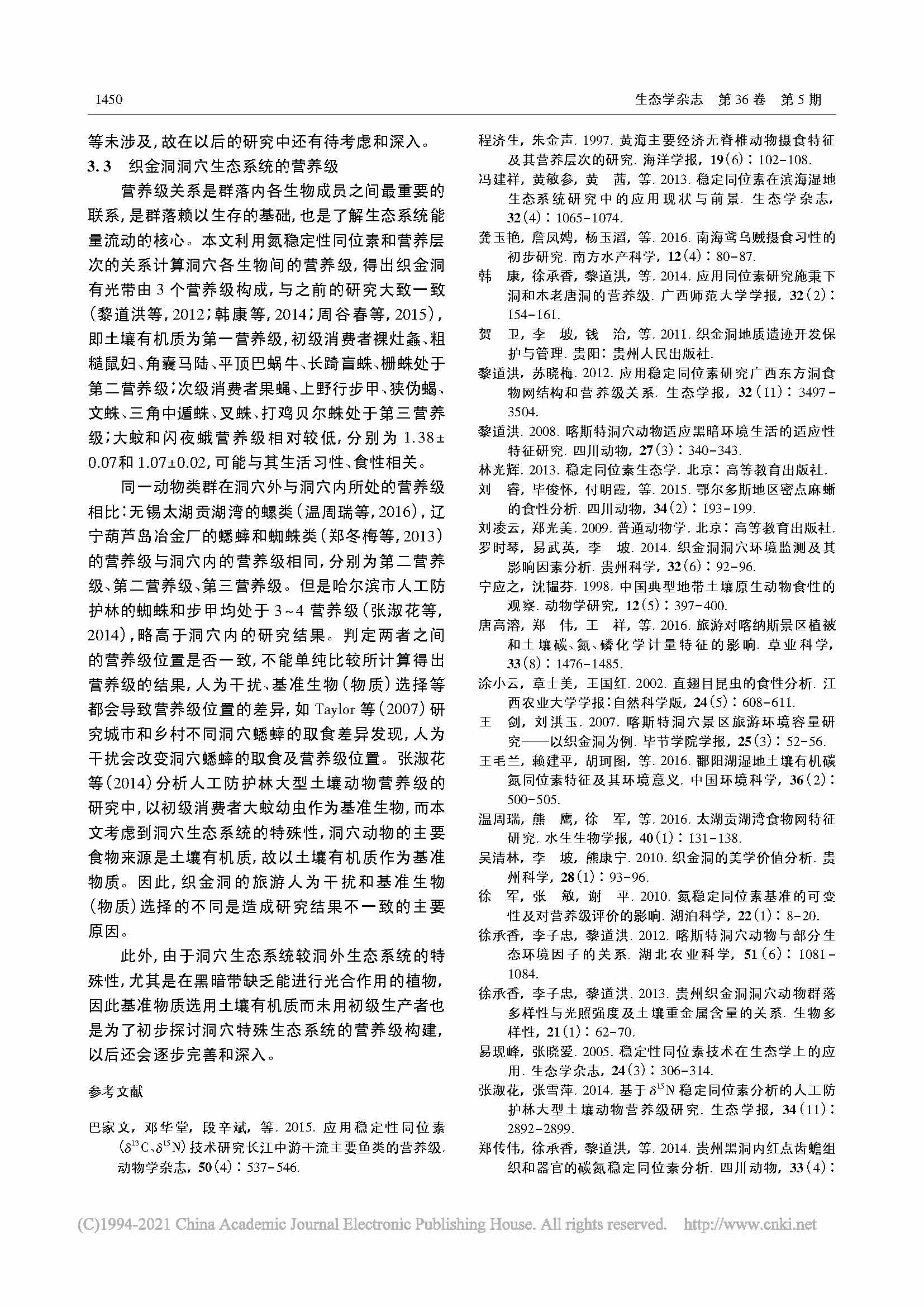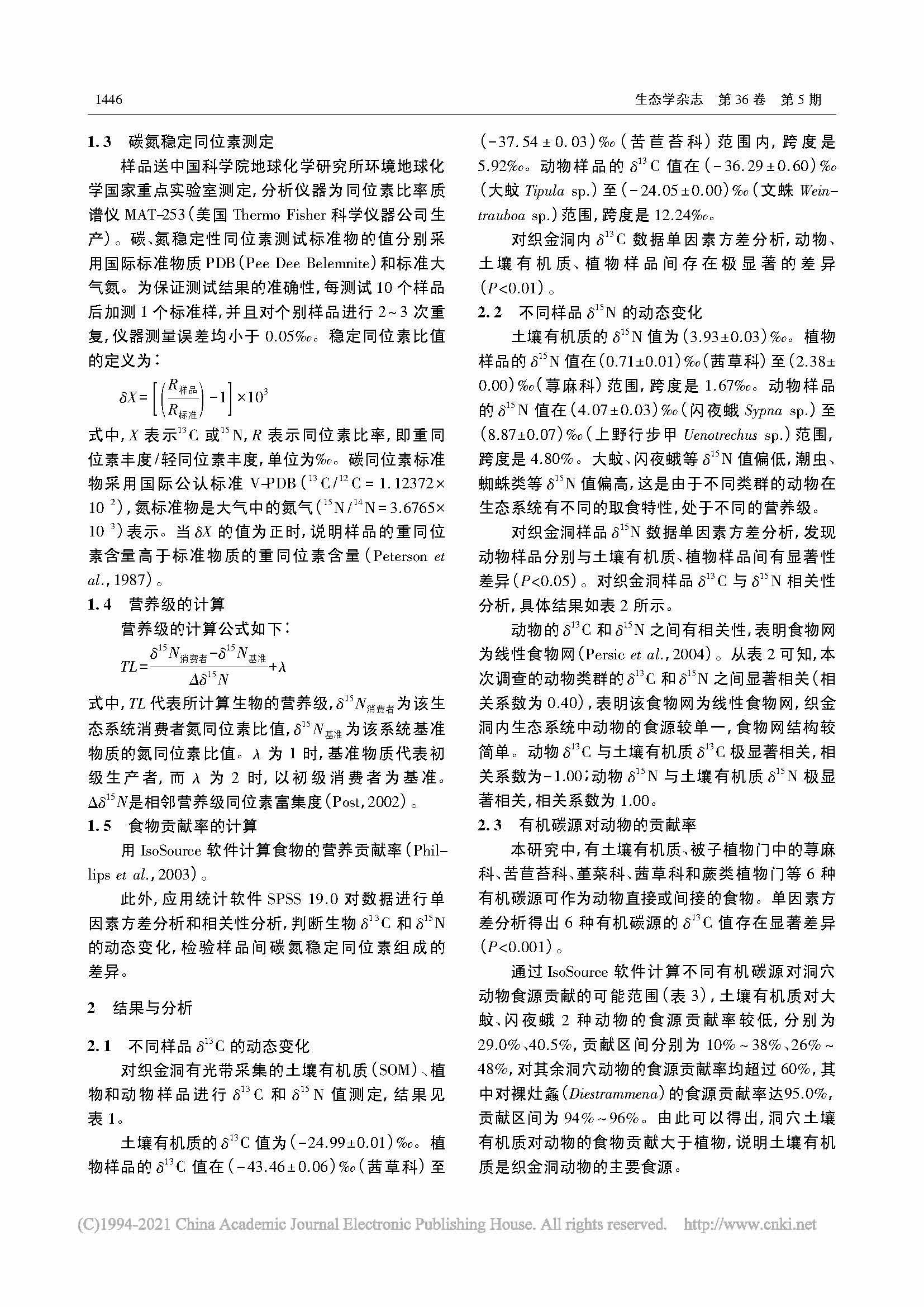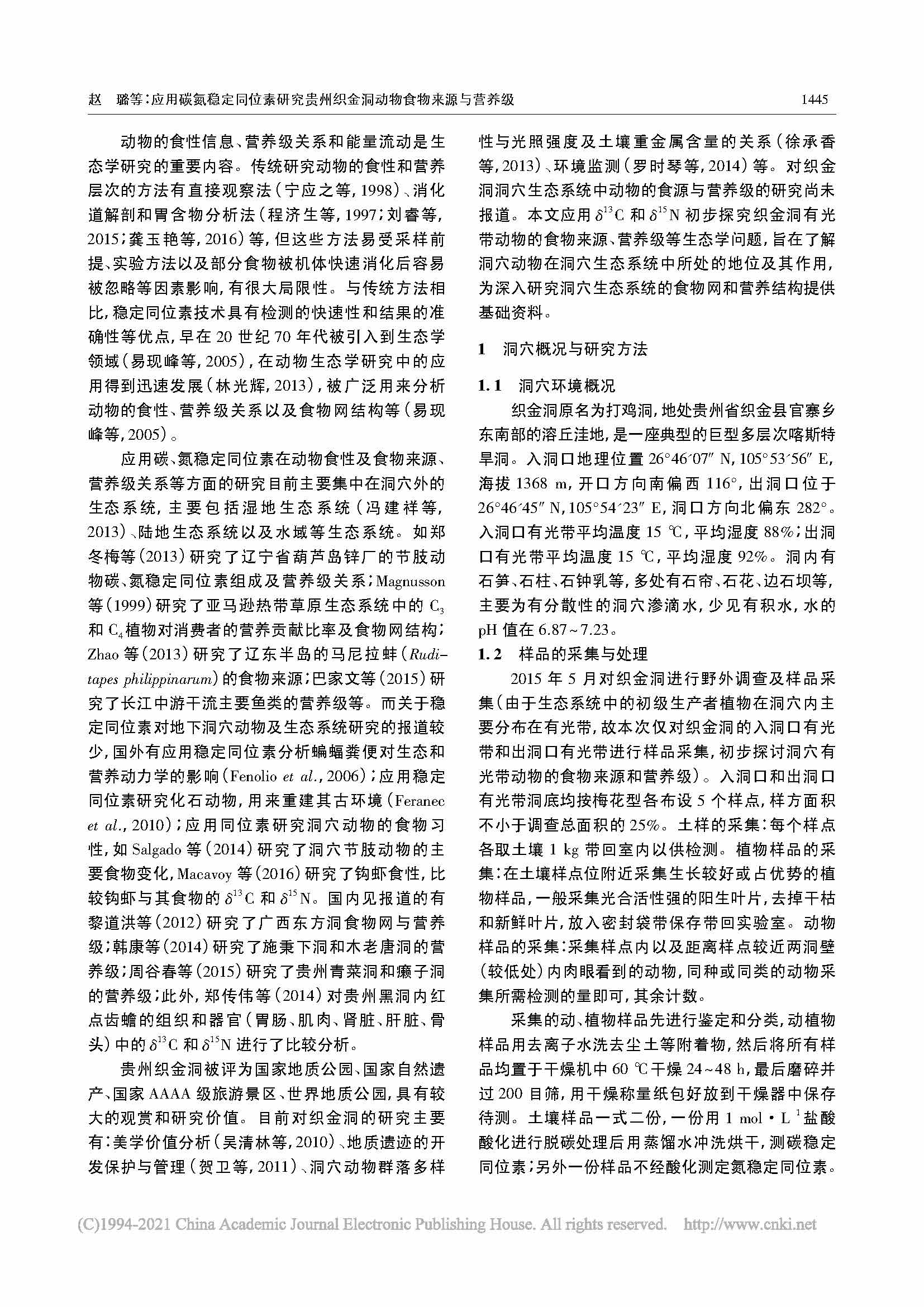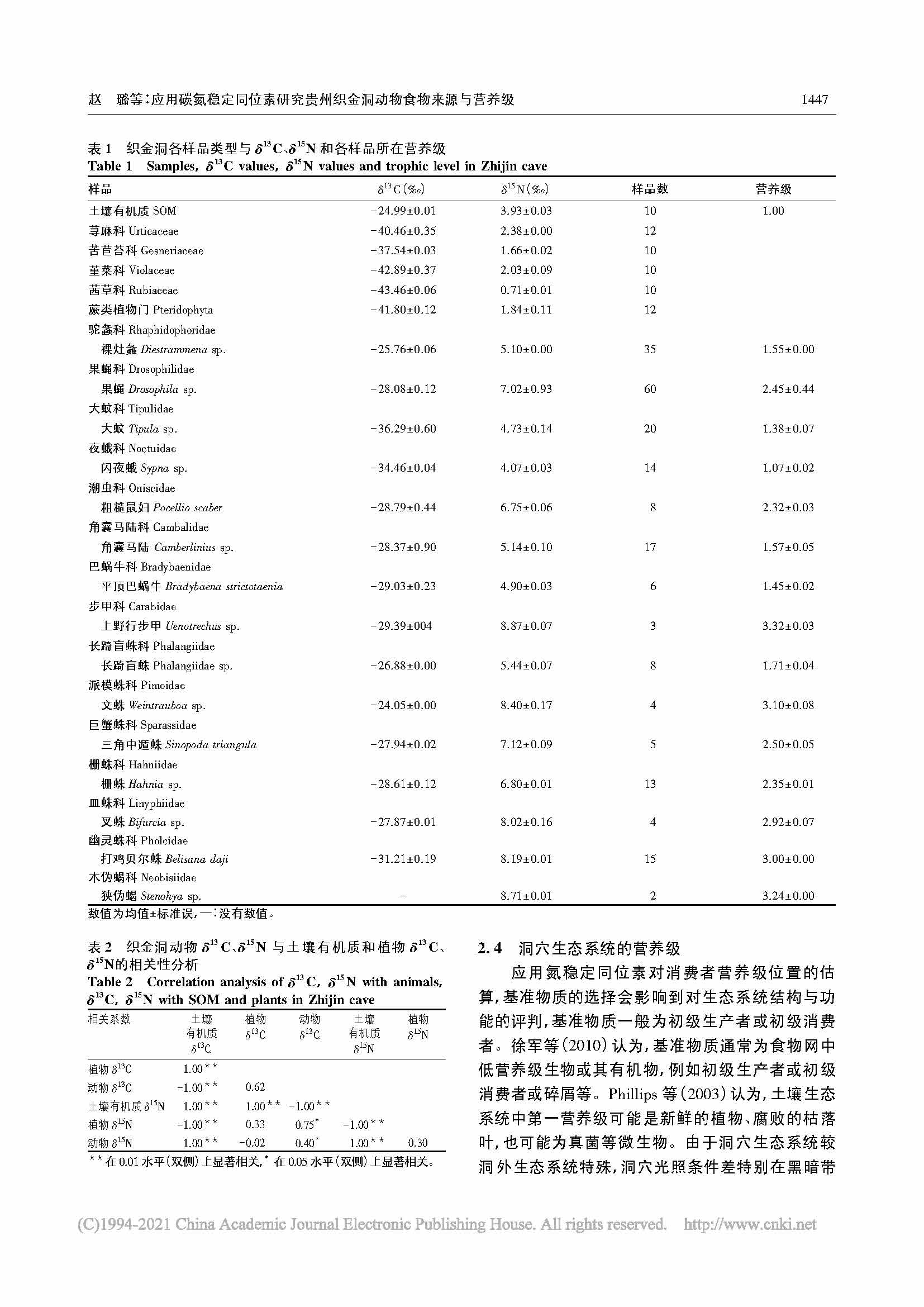 应用碳氮稳定同位素研究贵州织金洞动物食物来源与营养级_赵璐