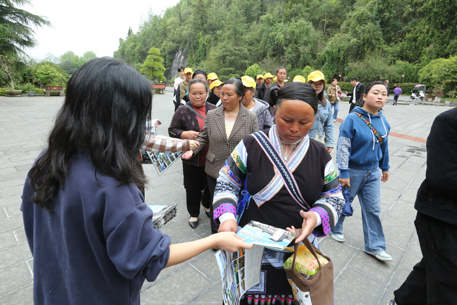本次活动主题为“珍爱地球 人与自然和谐共生”。在织金洞分会场,“中国世界地质公园风光摄影作品”专题展览备受青睐,一幅幅精美的地质公园风光图片吸引很多游客驻足观看。